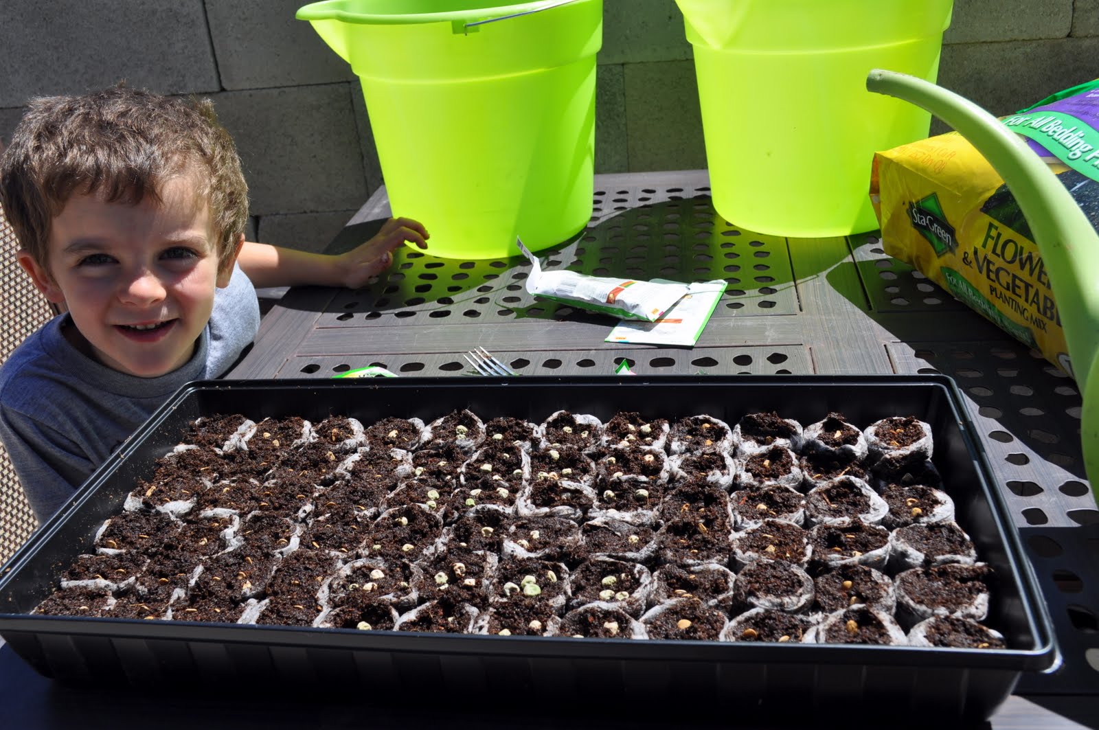 A week ago, we planted seeds - squash and peas - in a little indoor greenhouse in an effort to get a jump on having fresh veggies this summer. Seemingly overnight, the greenhouse went from looking like this: